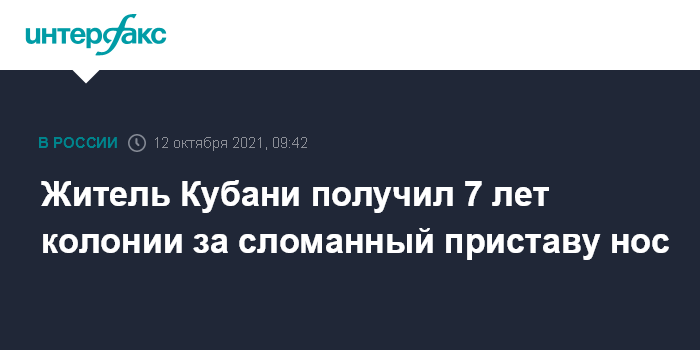 Москва. 12 октября. INTERFAX.RU - В Краснодарском крае Курганинский районный суд приговорил местного жителя к семи годам колонии общего режима за нападение на судебных приставов, один из которых получил перелом носа. Об этом сообщила пресс-служба Краснодарского краевого суда.