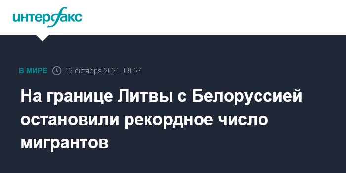 Москва. 12 октября. INTERFAX.RU - За минувшие сутки литовские пограничники не пропустили в Литву из Белоруссии 121 нелегального мигранта, пытавшегося попасть в страну в неразрешенном месте, сообщила во вторник Служба охраны госграницы Литвы (СОГГЛ).