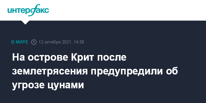 Москва. 12 октября. INTERFAX.RU - Власти греческого острова Крит во вторник распространили предупреждение об угрозе цунами в результате произошедшего ранее землетрясения, передает британский телеканал Sky News.