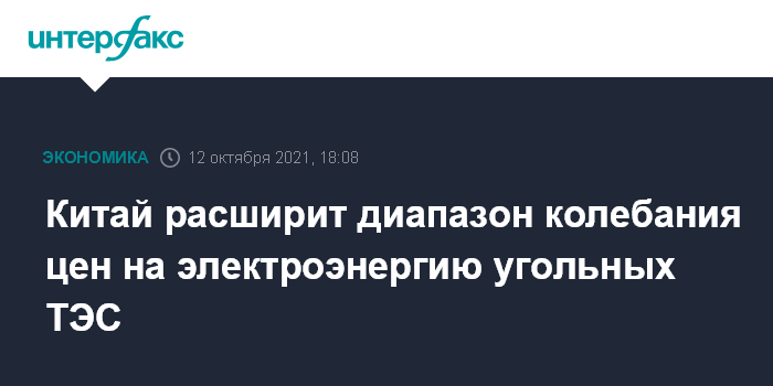 Москва. 12 октября. INTERFAX.RU - Китайские власти допустят бОльшие колебания цен на электроэнергию, вырабатываемую угольными ТЭС, для либерализации рынка на фоне продолжающегося энергетического кризиса.