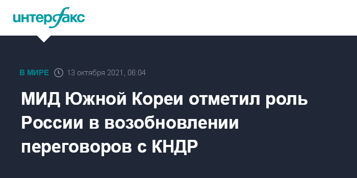 МИД Южной Кореи отметил роль России в возобновлении переговоров с КНДР