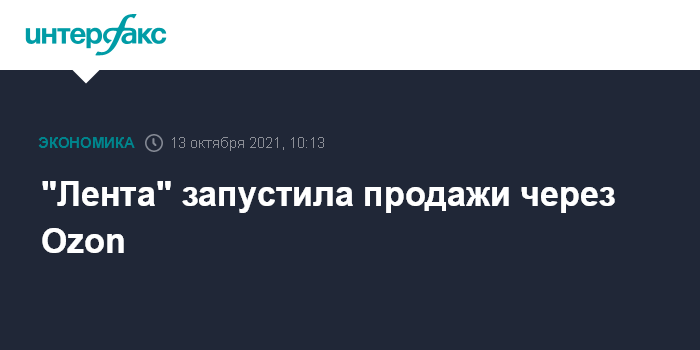 Москва. 13 октября. INTERFAX.RU - Ритейлер "Лента", управляющий крупнейшей в РФ сетью гипермаркетов, открыл онлайн-витрину на маркетплейсе Ozon.