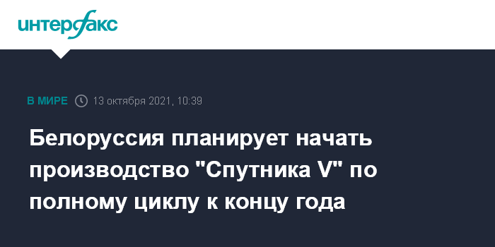 "Полный цикл "Спутника V" (запланирован - ИФ) к концу этого года на площадях "Белмедпрепаратов", - сказал министр "на полях" заседания Совета по сотрудничеству в области здравоохранения СНГ в Минске.