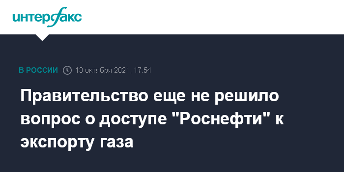 Правительство еще не решило вопрос о доступе "Роснефти" к экспорту газа