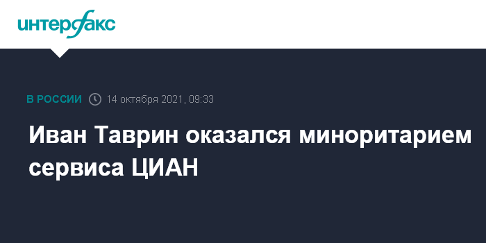 Москва. 14 октября. INTERFAX.RU - Владелец телевизионного холдинга ЮТВ и SPAC-компаний Kismet, экс-глава "Мегафона" Иван Таврин оказался миноритарием холдинговой компании сервиса продажи и аренды недвижимости ЦИАН, следует из проспекта к IPO кипрской CIAN plc.