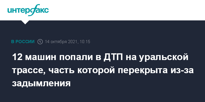 Москва. 14 октября. INTERFAX.RU - Три дорожные аварии с участием 12 машин произошли на трассе в Свердловской области, участки которой были перекрыты из-за задымления, сообщили "Интерфаксу" в пресс-службе регионального управления ГИБДД ГУ МВД России в четверг.