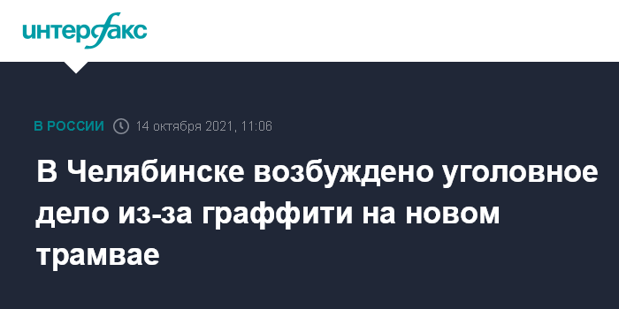Москва. 14 октября. INTERFAX.RU - В Челябинске полиция возбудила уголовное дело о вандализме по факту нанесения граффити на новый трамвай в депо №1, сообщили в областной прокуратуре.