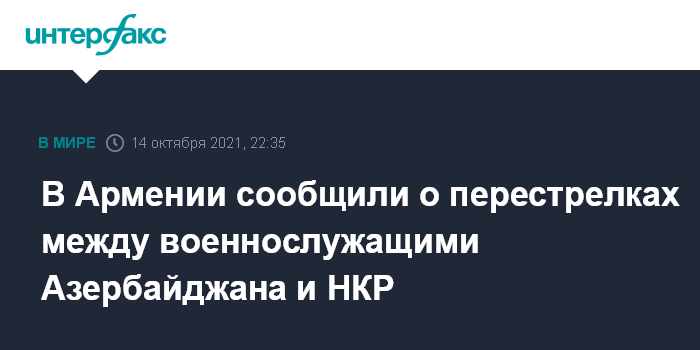 Москва. 14 октября. INTERFAX.RU - Интенсивные перестрелки между военнослужащими Азербайджана и непризнанной Нагорно-Карабахской республики (НКР) происходят в районе населенного пункта Мартуни, сообщают армянские СМИ.
