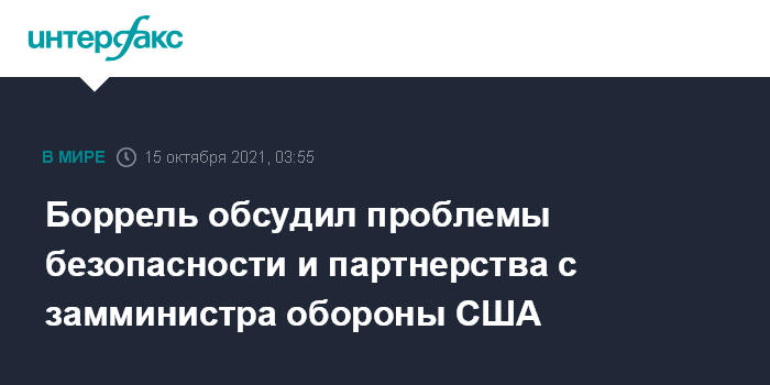 Ранее Брюссель сообщил, что Боррель в ходе визита в Вашингтон 13-15 октября обсудит с госсекретарем США Энтони Блинкеном и Хикс проблемы обороны, безопасности, восстановления экономики после пандемии коронавируса.