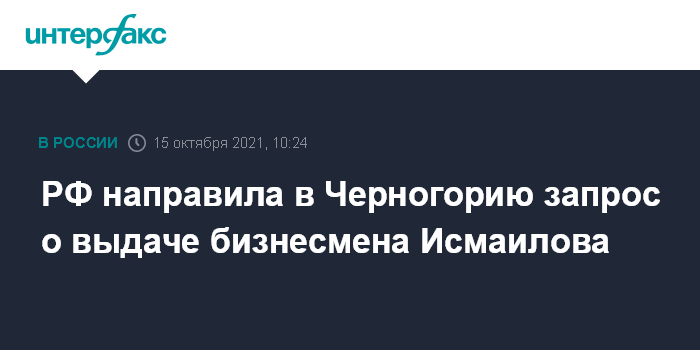 РФ направила в Черногорию запрос о выдаче бизнесмена Исмаилова