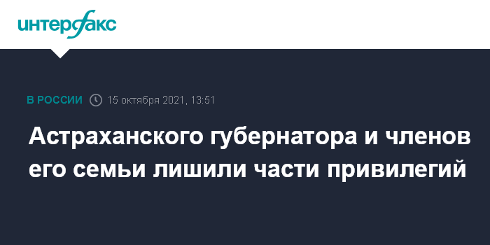 Астраханского губернатора и членов его семьи лишили части привилегий