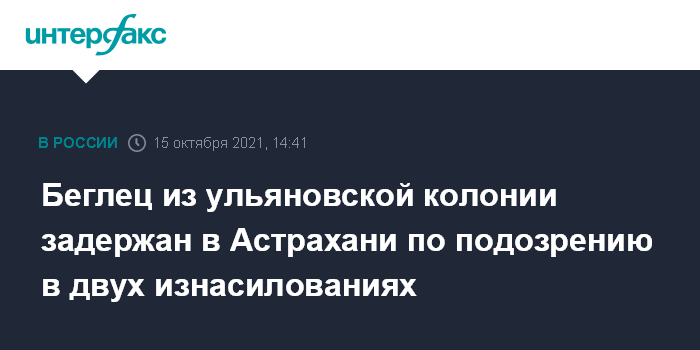 Беглец из ульяновской колонии задержан в Астрахани по подозрению в двух изнасилованиях
