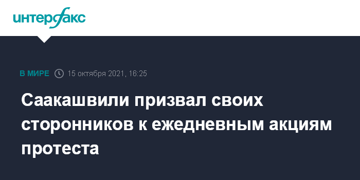 Москва. 15 октября. INTERFAX.RU - Бывший президент Грузии Михаил Саакашвили в очередном послании из Руставской тюрьмы призвал своих сторонников к проведению ежедневных акций протеста.