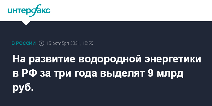 На развитие водородной энергетики в РФ за три года выделят 9 млрд руб.