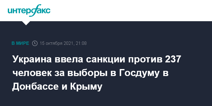 Украина ввела санкции против 237 человек за выборы в Госдуму в Донбассе и Крыму