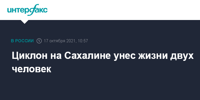 Москва. 17 октября. INTERFAX.RU - Еще одна пострадавшая при обрушении кровли из-за сильного ветра в городе Александровск-Сахалинский скончалась от полученных травм, всего погибли два человека.