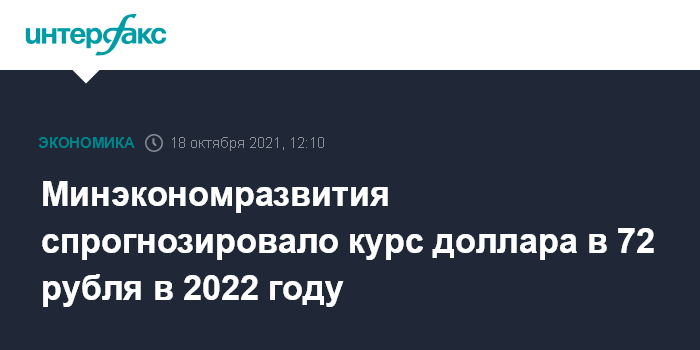 Москва. 18 октября. INTERFAX.RU - Нынешнее укрепление рубля ниже 72 рублей за доллар соответствует заложенным ожиданиям Минэкономиразвития, которое прогнозирует средний курс в этом году в 73,6 рубля за доллар, а в 2022 году - чуть выше 72 рублей за доллар. Об этом в Госдуме заявил глава ведомства Максим Решетников.