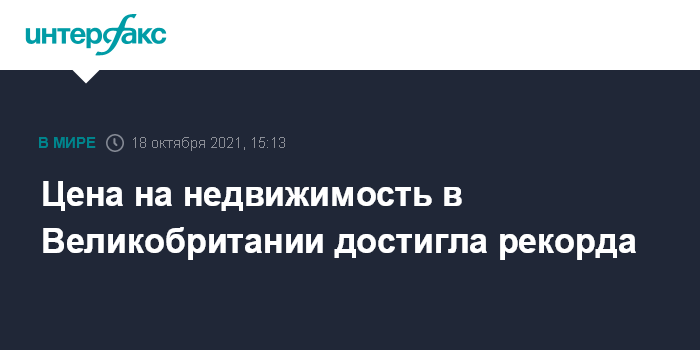 Москва. 18 октября. INTERFAX.RU - Начальная цена на недвижимость в Великобритании достигла рекордного максимума во всех регионах страны впервые с 2007 года на фоне низких процентных ставок, свидетельствуют данные портала недвижимости Rightmove.