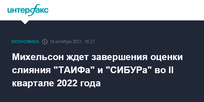 Михельсон ждет завершения оценки слияния "ТАИФа" и "СИБУРа" во II квартале 2022 года