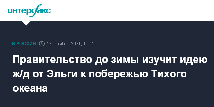 Москва. 18 октября. INTERFAX.RU - Правительство РФ получило полтора месяца на изучение идеи протянуть новую железную дорогу от крупного месторождения коксующегося угля в Якутии до Тихого океана.