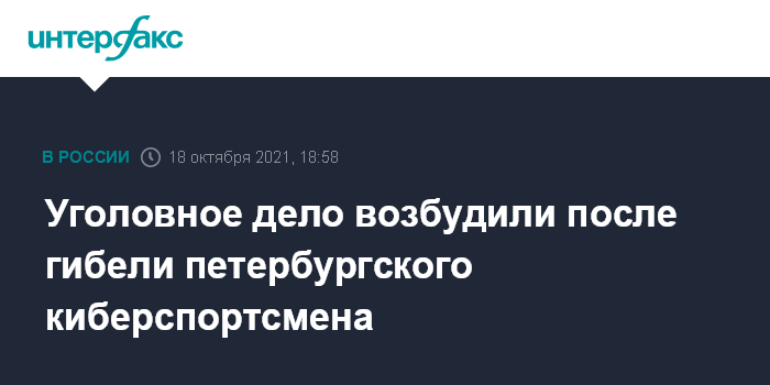 Уголовное дело возбудили после гибели петербургского киберспортсмена