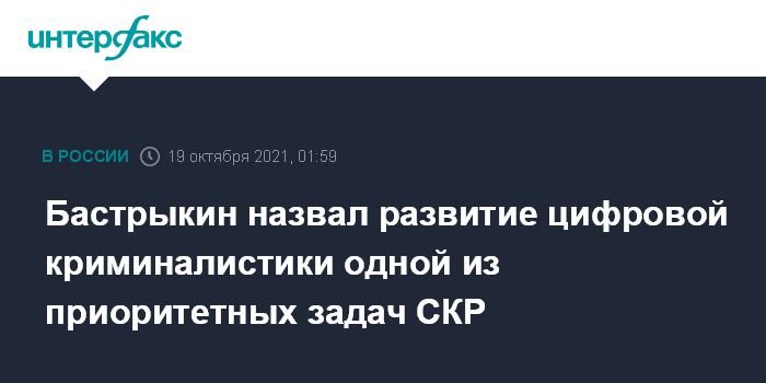 Москва. 19 октября. INTERFAX.RU - Внедрение передовых цифровых технологий является одной из приоритетных задач Следственного комитета РФ (СКР), для обучения квалифицированных IT-специалистов в ведомстве разрабатывают новые курсы и профессиональные программы, заявил руководитель СКР Александр Бастрыкин.