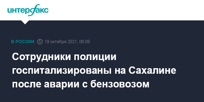 Сотрудники полиции госпитализированы на Сахалине после аварии с бензовозом