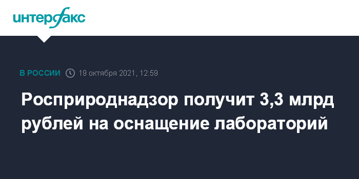 Москва. 19 октября. INTERFAX.RU - Росприроднадзор до 2023 года получит из федерального бюджета порядка 3,3 млрд рублей на обновление и расширение материально-технической базы лабораторий, сообщила журналистам руководитель ведомства Светлана Радионова.