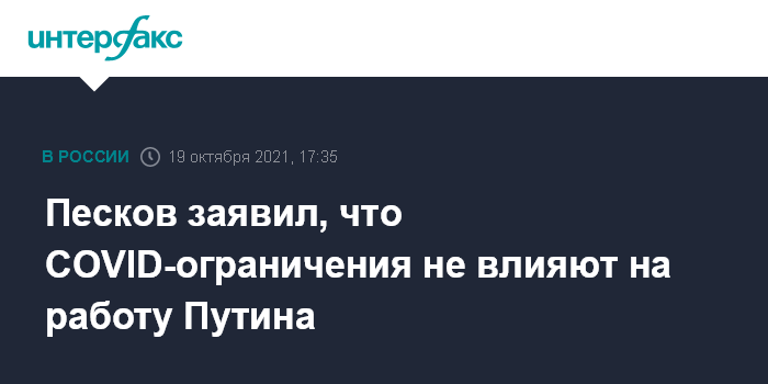 Песков заявил, что COVID-ограничения не влияют на работу Путина