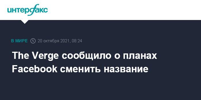 Москва. 20 октября. INTERFAX.RU - Facebook планирует провести ребрендинг, сменив свое название так, чтобы оно отражало усилия компании по созданию "метавселенной" (the metaverse), пишет The Verge со ссылкой на источник, непосредственно информированный об этих планах.