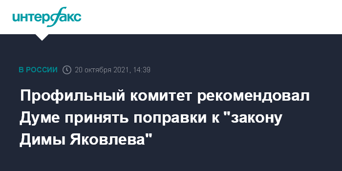 Профильный комитет рекомендовал Думе принять поправки к "закону Димы Яковлева"