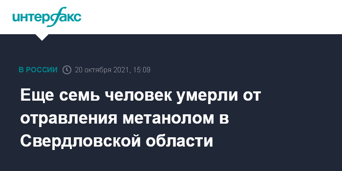 "Четыре - Екатеринбург, три - Белоярский район. Предположительно, все - метанол", - сказал собеседник агентства. По его словам, люди умерли 15-20 октября.