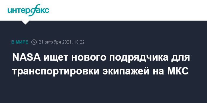 Москва. 21 октября. INTERFAX.RU - Национальное управление США по аэронавтике и исследованию космического пространства (NASA) ищет одного или больше подрядчиков среди американских частных компаний для осуществления миссий по транспортировке астронавтов на Международную космическую станцию (МКС), сообщается на сайте управления.