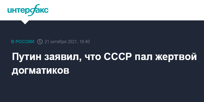 Москва. 21 октября. INTERFAX.RU - Президент РФ Владимир Путин считает, что к развалу СССР привело отсутствие назревших гибких и продуманных преобразований, а также действия радикалов разного толка.