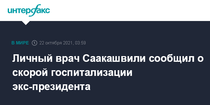 Личный врач Саакашвили сообщил о скорой госпитализации экс-президента