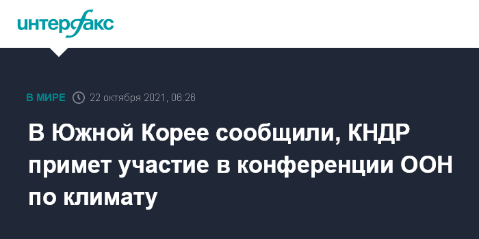 Москва. 22 октября. INTERFAX.RU - Делегация Северной Кореи примет участие в конференции ООН по климату COP26 в Глазго (Шотландия), сообщает "Ренхап" со ссылкой на представителя МИД Республики Корея.