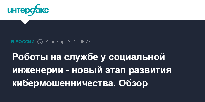 Москва. 22 октября. INTERFAX.RU - Кибермошенники в последние месяцы начали использовать новый способ социальной инженерии: их потенциальным жертвам теперь звонят роботы. Если же человек нажал нужную кнопку после общения с искусственным интеллектом, то в диалог включается живой оператор мошеннической схемы. Такой способ позволяет отсечь ту часть людей, которые точно повесят трубку в самом начале общения с "сотрудником службы безопасности банка", и тем самым - повысить эффективность обзвона.