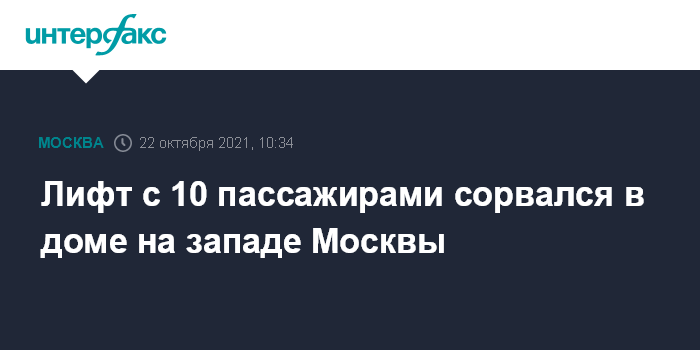 Лифт с 10 пассажирами сорвался в доме на западе Москвы