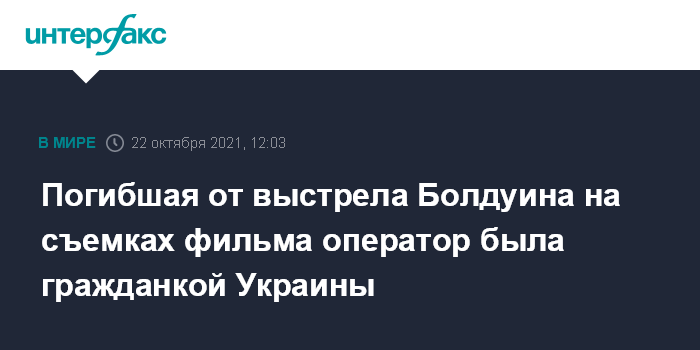 Погибшая от выстрела Болдуина на съемках фильма оператор была гражданкой Украины