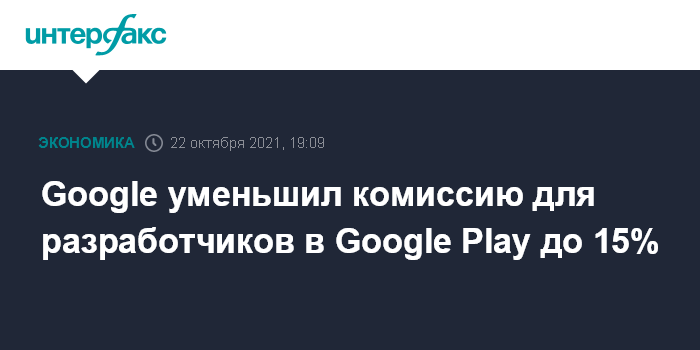 Москва. 22 октября. INTERFAX.RU - Компания Google сообщила, что уменьшила комиссию для разработчиков в своем магазине приложений Google Play вдвое - до 15%.