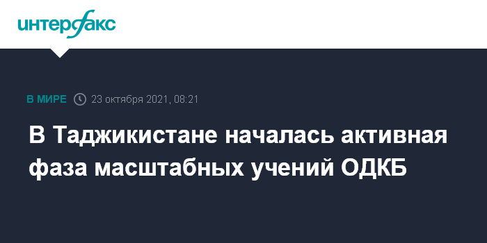 Ранее пресс-служба Центрального военного округа (ЦВО) сообщала, что активная фаза учений "Эшелон", "Поиск" и "Взаимодействие" с участием 4 тыс. военнослужащих стран ОДКБ и более 500 единиц техники пройдет 23 октября на полигоне Харб-Майдон в 20 км от границы с Афганистаном.