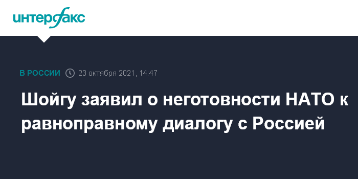 Москва. 23 октября. INTERFAX.RU - Министр обороны РФ Сергей Шойгу заявил о нежелании стран НАТО идти на равноправный диалог.