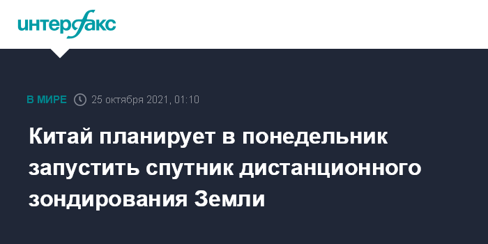 Китай планирует в понедельник запустить спутник дистанционного зондирования Земли