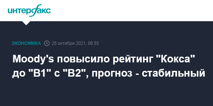 Moody's повысило рейтинг "Кокса" до "В1" с "B2", прогноз - стабильный