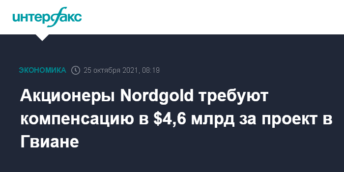 Акционеры Nordgold требуют компенсацию в $4,6 млрд за проект в Гвиане