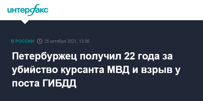 Петербуржец получил 22 года за убийство курсанта МВД и взрыв у поста ГИБДД