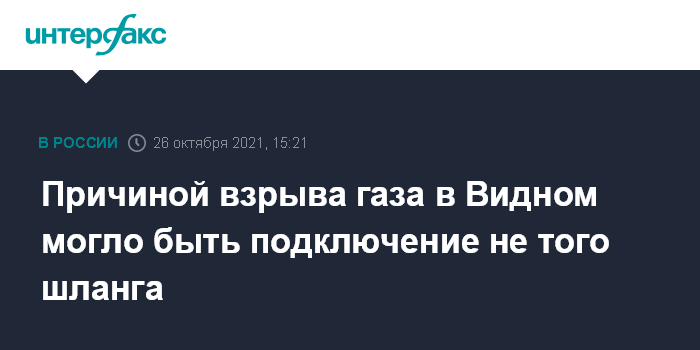 Москва. 26 октября. INTERFAX.RU - По предварительным данным, причиной взрыва газа в пятиэтажном доме в Видном могло быть неправильное использование газового оборудования, сообщил зампред правительства Московской области Евгений Хромушин в совете по вопросам газификации регионов при Совфеде.
