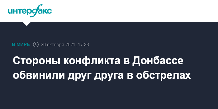 Москва. 26 октября. INTERFAX.RU - В самопровозглашенной Донецкой народной республике (ДНР) обвинили украинских военных в попытке взять под контроль поселок Старомарьевка на линии соприкосновения сторон в Донбассе. В Киеве сообщают о гибели украинского военного.