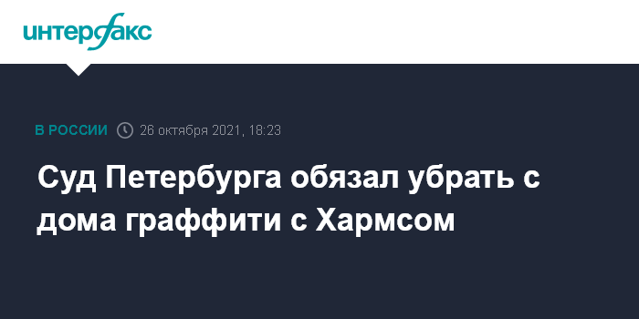 Как сообщалось, в апреле администрация Центрального района Петербурга обратилась в суд с требованием убрать неразрешенное граффити с Даниилом Хармсом с фасада многоквартирного дома на улице Маяковского.