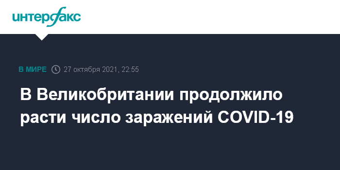 Москва. 27 октября. INTERFAX.RU - В Великобритании за последние сутки заражение коронавирусом COVID-19 выявили у 43,9 тыс. человек, сообщает в среду The Guardian.